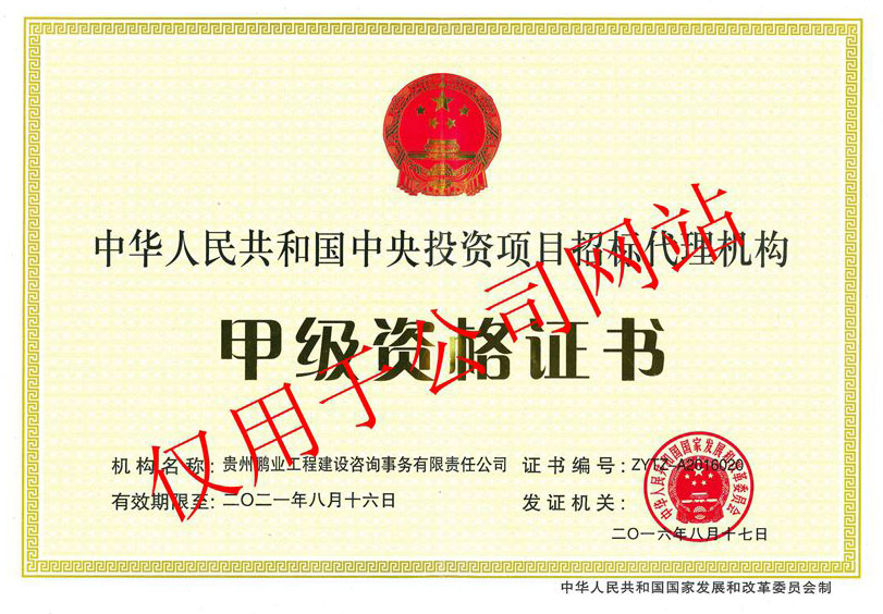 中央投資項(xiàng)目招標(biāo)代理甲級(jí)資質(zhì)證書