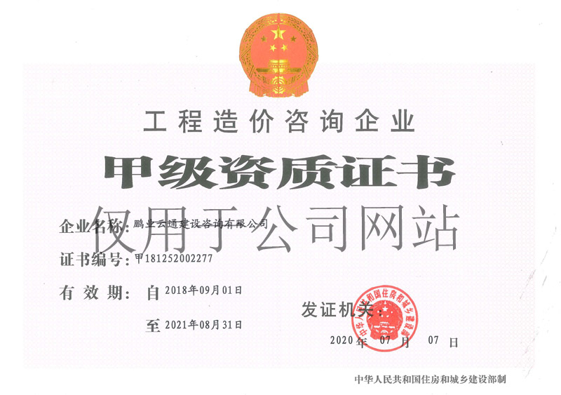 工程造價(jià)咨詢甲級(jí)資質(zhì)證書